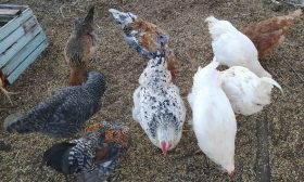 Bonjour ! Je continue l'histoire de nos poules. Elles sont passées de poussins à jeunes poules. Il y a aussi quelques coqs. Ils ont commencé à chanter et à voler les poules du coq plus âgé. Voici les huit poules américaines qui ont grandi (la dernière fois, je vous avais raconté comment la poule d'une amie les avait fait éclore, mais comme elle ne comptait pas garder de poussins...