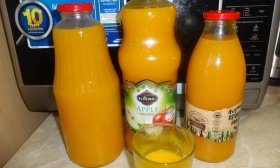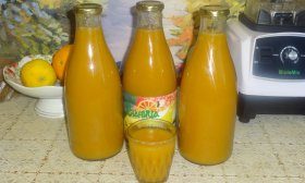 Nous avons préparé du jus de potiron aux oranges pour l'hiver. Il était délicieux. Le potiron était gros, il en restait donc la moitié, qu'il a fallu transformer. J'ai décidé de faire du nectar de potiron aux pommes. Nous en avions acheté cet hiver et nous l'avions beaucoup aimé. Il était vendu dans des bouteilles comme celles-ci. L'étiquette mentionne les ingrédients suivants : purée de potiron, nectar, sucre, acide citrique et eau. J'ai décidé de tenter l'expérience…
