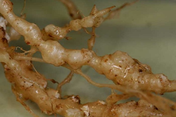 Un ver rond blanc, de 1,2 à 1,5 mm de long, provoque la méloidogynie. La racine se tord, sa croissance s'arrête et plusieurs pousses difformes apparaissent. L'infection se manifeste par le jaunissement et le flétrissement des feuilles.